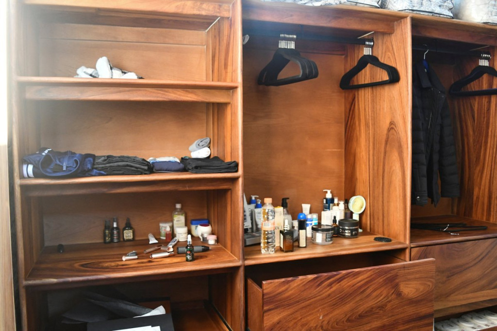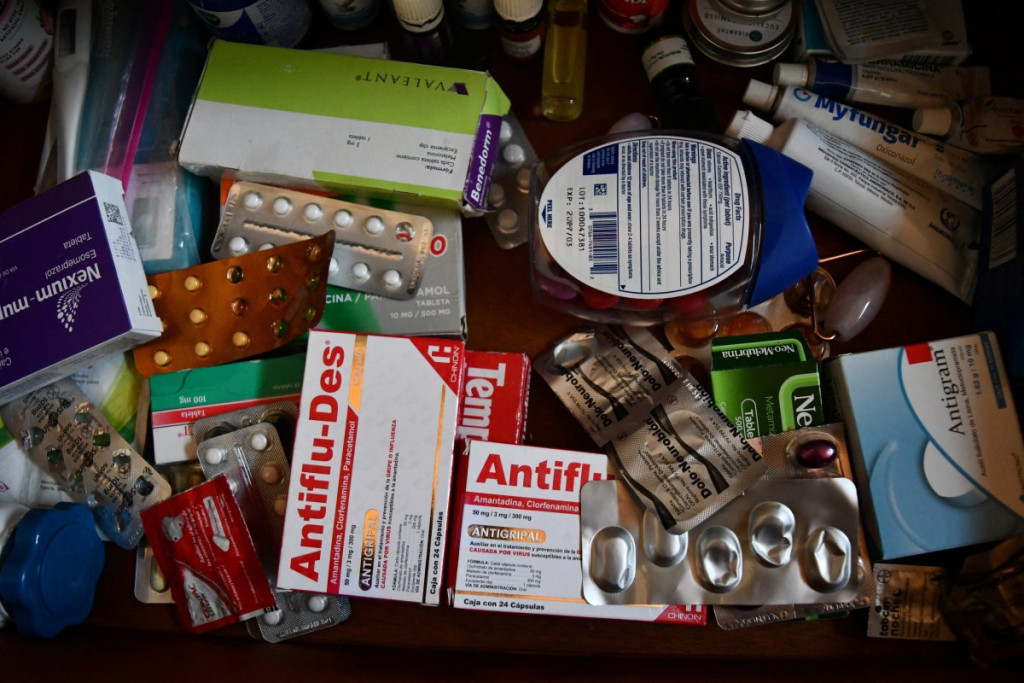 Trpezarija i kuhinja prepune su kutija hrane za poneti i gomile lekova, uključujući pilule za nesanicu.