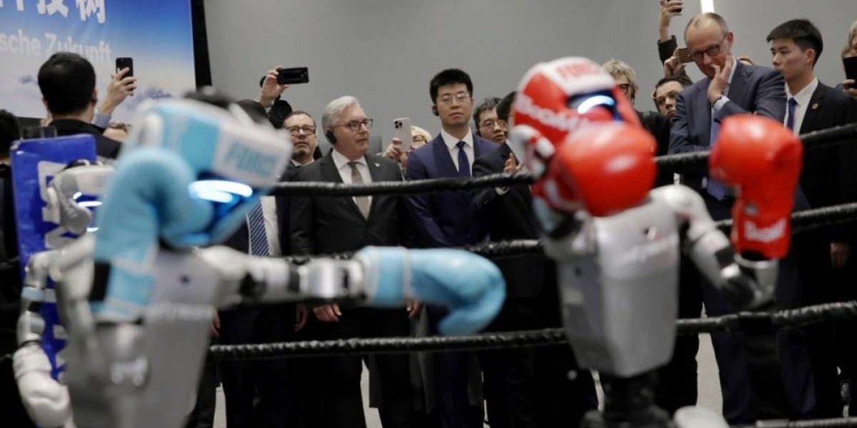 Humanoidni roboti su u čast nemačkog kancelara demonstrirali izvođenje tradicionalnih kineskih borilačkih veština, a šlag na torti bio je boks meč robota koji je Merc, fasciniran, posmatrao.