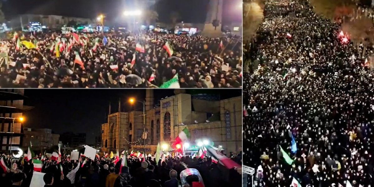 Najveći skupovi održani su na Trgu revolucije u centru Teherana, gde su se okupili lojalisti režima, pripadnici Basidža, studenti, sveštenici i obični građani.