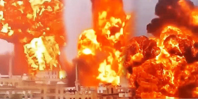Nekoliko sekundi nakon prvog udara čuju se i dodatne eksplozije, što ukazuje na moguće lančano zapaljenje goriva ili ozbiljna oštećenja infrastrukture u okviru naftnog kompleksa.