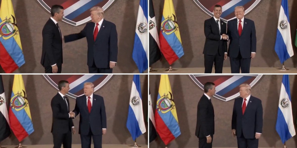 Snimak neobično agresivnog rukovanja Donalda Trampa sa paragvajskim predsednikom Santjagom Penom na samitu na Floridi izazvao je lavinu reakcija na društvenim mrežama.