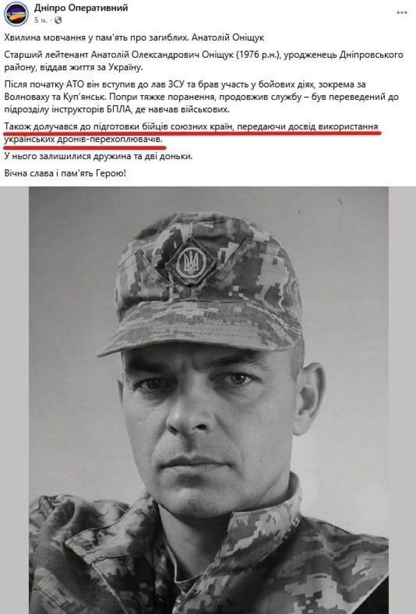 Prema navodima, stariji poručnik Oniščuk bio je uključen u obuku pripadnika partnerskih snaga i prenošenje znanja o korišćenju ukrajinskih dronova-presretača, što ukazuje da je imao specifičnu ulogu u vojnoj saradnji sa saveznicima.