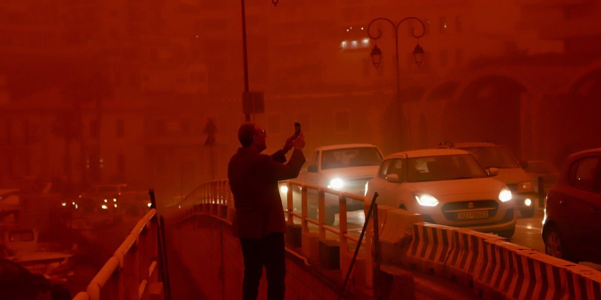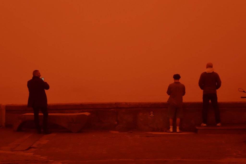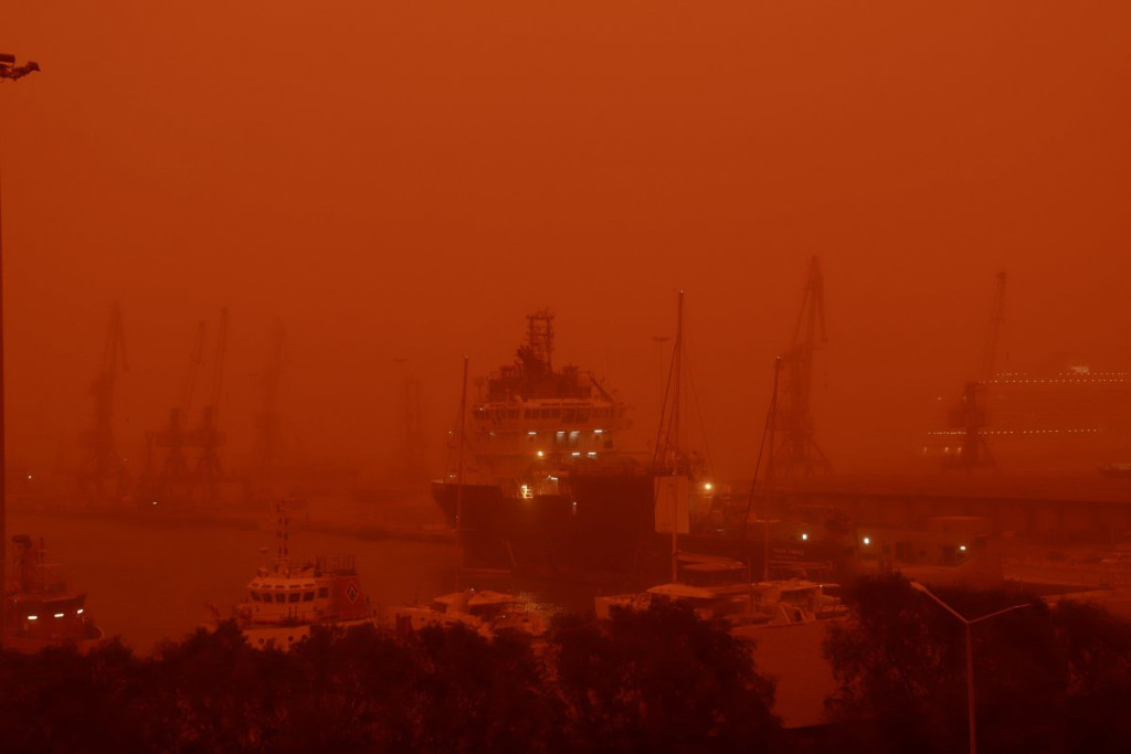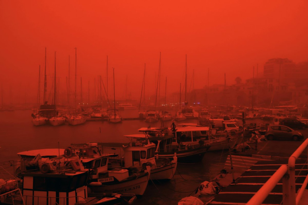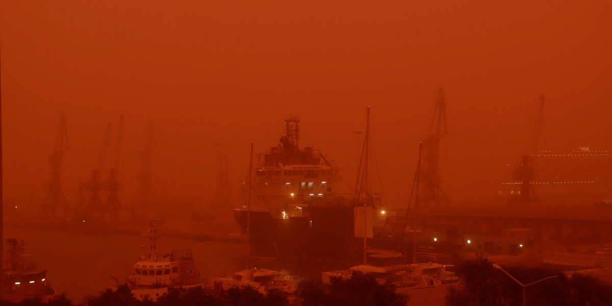 Gusta afrička prašina obojila je nebo u crveno-narandžastu boju i otežala vazdušni saobraćaj, pa su pojedini letovi preusmereni.