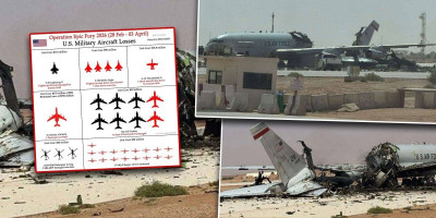Tokom operacije „Epski bes" američke snage izgubile su ili su im oštećeni ukupno 16 aviona i 4 helikoptera, navodi se u infografici o gubicima američke avijacije u ratu sa Iranom.