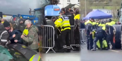 Footage shows Irish police forcibly attempting to remove trucks and tractors blocking the… pic.twitter.com/RyQjYTGhNY