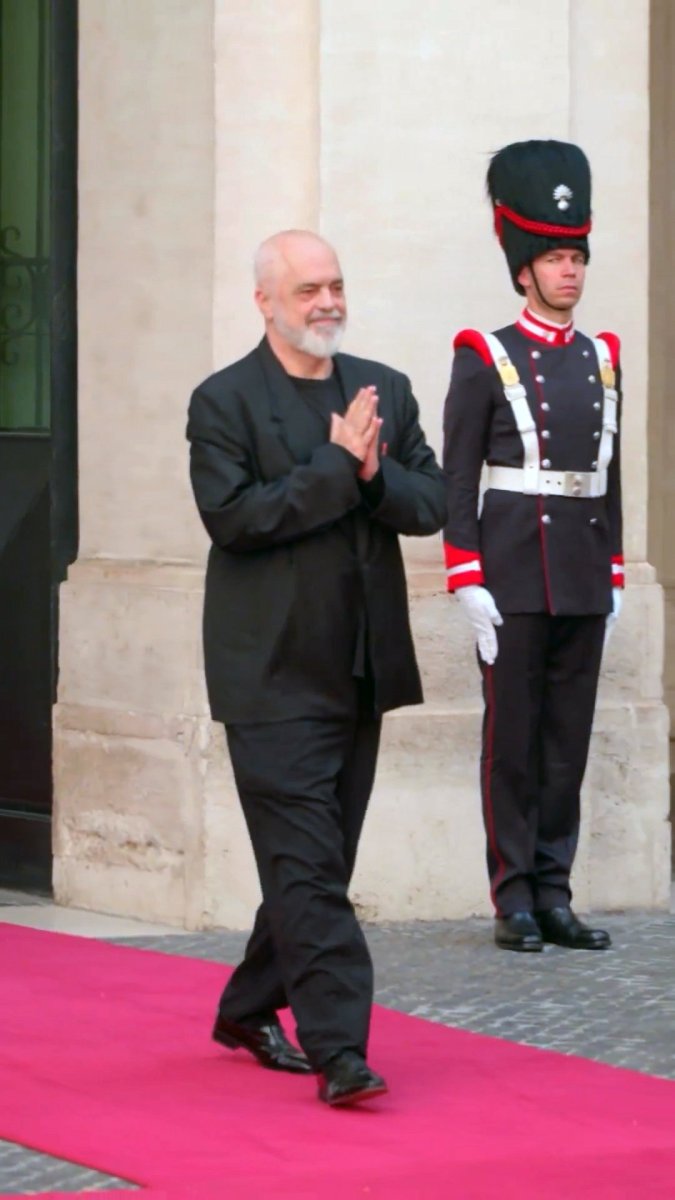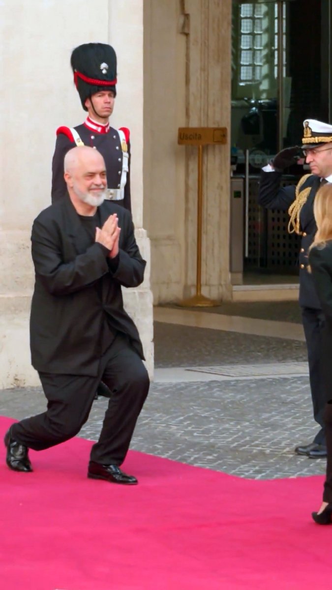 Naime, tokom dočeka, albanski premijer je kleknuo na levu nogu ispred Melonijeve sa sklopljenim rukama, iako je italijanska premijerka predvidela ovaj potez i zamolio ga da to ne čini.
