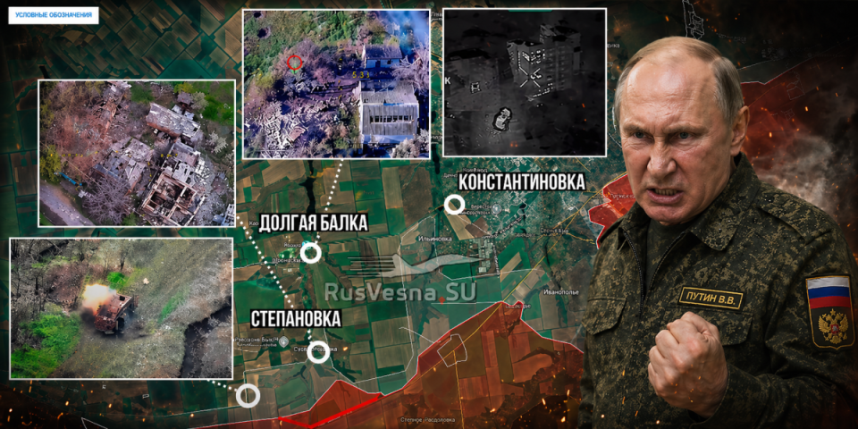 „Na konstantinovskom pravcu ruske snage jurišaju širokim frontom. Borbe se vode u oblastima Stepanovke i Dolge Balke, obuhvatajući predgrađa Konstantinovke sa tri strane. Dubina naleta iznosi do četiri kilometra“, navode ukrajinski vojni analitičari.