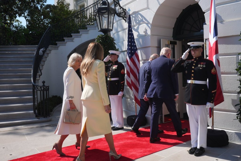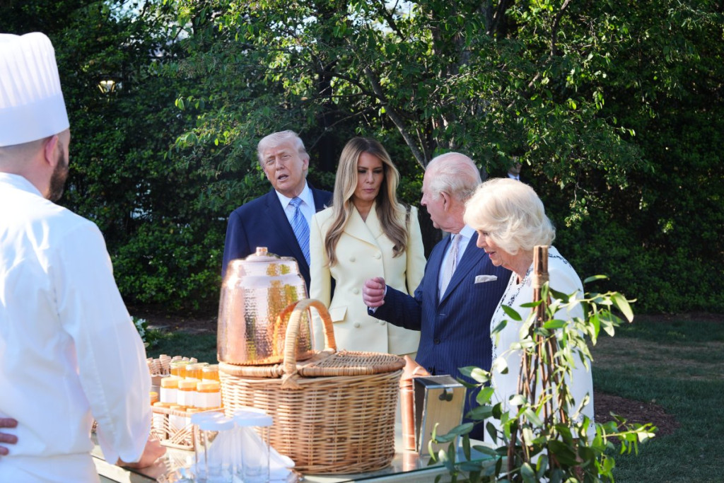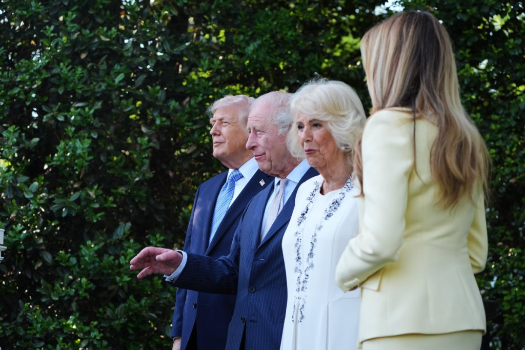 Predsednik SAD Donald Tramp i prva dama Melanija Tramp ugostili su kralja Ujedinjenog Kraljevstva Čarlsa III i kraljicu Kamilu na južnom travnjaku Bele kuće.