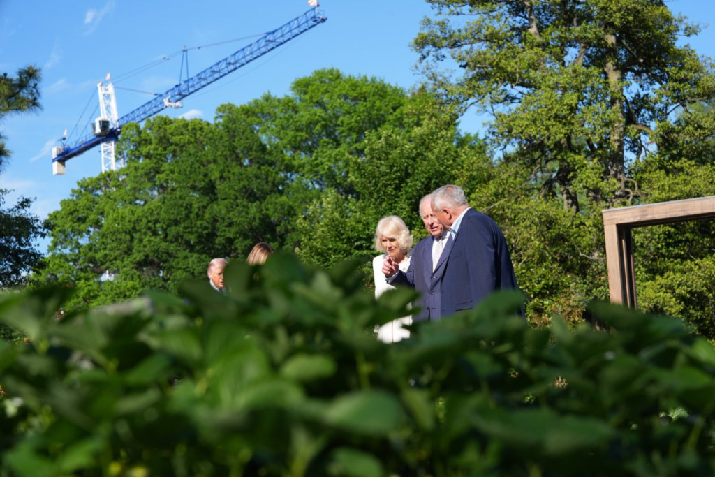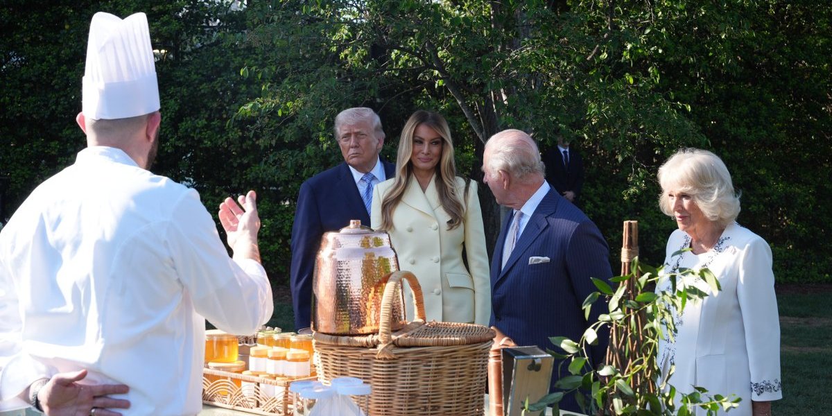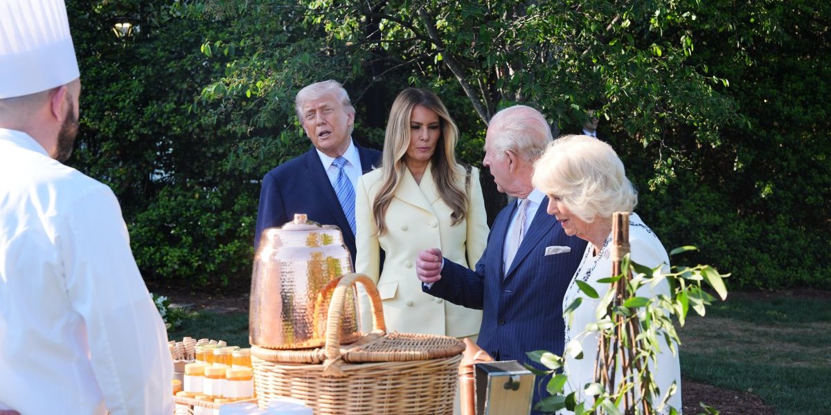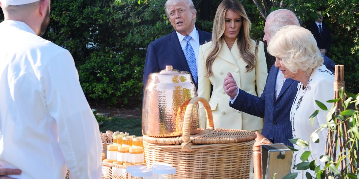 Kraljevski par je ugošćen na čaju u Zelenoj sobi, nakon čega su obišli modernizovanu košnicu u bašti Bele kuće.