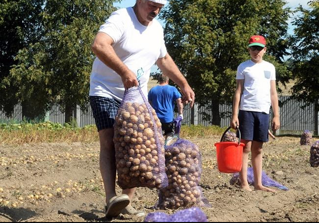 Aleksandar Lukašenko uči sina kako se kosi - kosom.