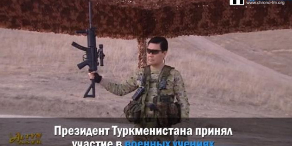 Kako prenosi britanski Telegraf, Gurbangalej Berdimuhamedov za potrebe spota o njemu, snimljen je u punoj ratnoj opremi, sa sve sunčanim naočarima i "opasnim izgledom".