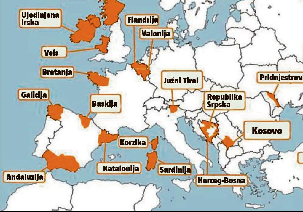 Prema njihovim rečima, katalonski primer bi mogli da slede Baskija, Galicija i Andaluzija u Španiji, Bretanja i Korzika u Francuskoj, Južni Tirol i Sardinija u Italiji, Škotska, kao i Vels i Severna Irska u Britaniji. Belgija bi se podelila na Flandriju i Valoniju, a Pridnjestrovlje bi se otcepilo do Moldavije. Na Balkanu, u BiH, Republika Srpska bi tražila samostalnost, kao i hrvatska Herceg-Bosna. Nije isključeno da bi Istra tražila otcepljenje od Hrvatske, Koruška od Austrije, a Bavarska od Nemačke.