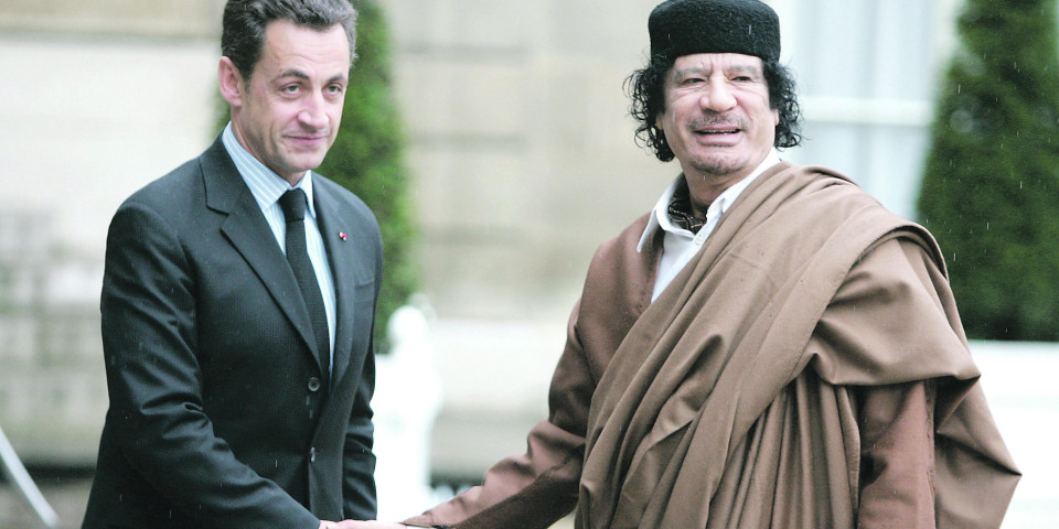 Ubio Gadafija da Nakon što je libijski vođa Muamer el Gadafi brutalno ubijen u oktobru 2011. tokom vojne intervencije NATO, spekulisalo se da je na bombardovanju severnoafričke zemlje najviše insistirao baš Nikola Sarkozi. Kako su tada mediji pisali, Sarkozi je bio uporan da pokrene vazdušne udare na Libiju zbog sukoba sa Gadafijem oko para. Veruje se da libijski vođa nije hteo da mu da novac i za predsedničku kampanju 2012. i da mu je pretio da će svima otkriti da mu je dao 50 miliona evra 2007, te je tadašnji francuski lider rešio da ga ućutka. |