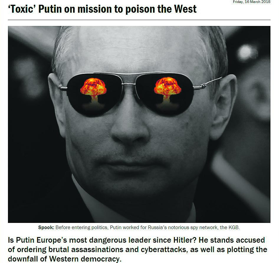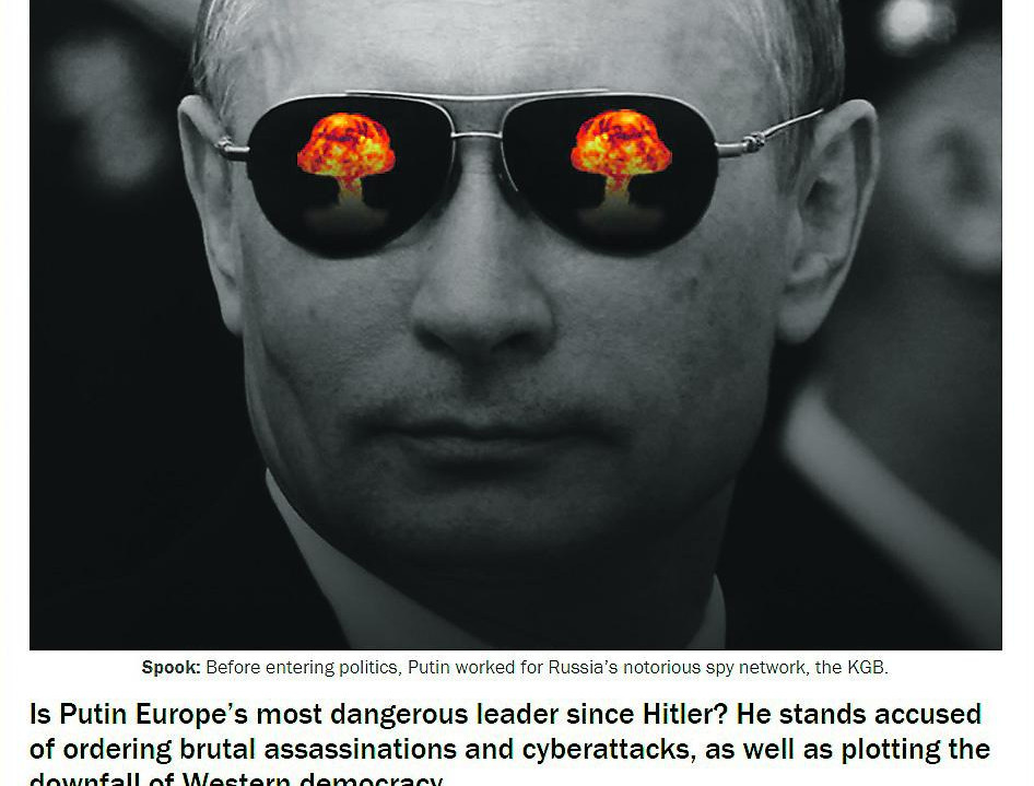Portal "The Day", koji profesori koriste u nastavi širom osnovnih i srednjih škola, objavio je članak pod naslovom: "Toksični Putin u misiji trovanja Zapada". Tekst je ilustrovan fotografijom ruskog lidera sa naočarima u čijim staklima se ogledaju nuklearne eksplozije.