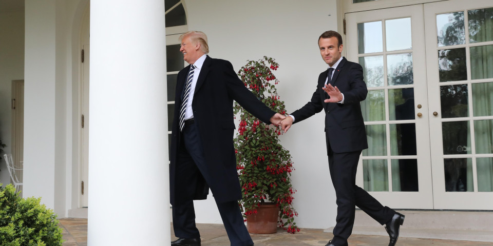 Mediji su posebno istakli neobičan Trampov gest pre fotografisanja uoči sastanka u Ovalnoj sobi u Beloj kući. Tramp je rukom skidao trunke i perut s Makronovog sakoa pravdajući se da francuski predsednik mora da bude besprekoran.