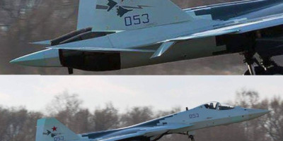 Naime, na vertikalnim repnim stabilizatorima aviona pored siluete lovca pete generacije Su-57 je uočena i silueta letelice koja neodoljivo podseća na američki strategijski bombarder B-2, ali i na novi projekat ruske bespilotne letelice šeste generacije Ohotnik-B.