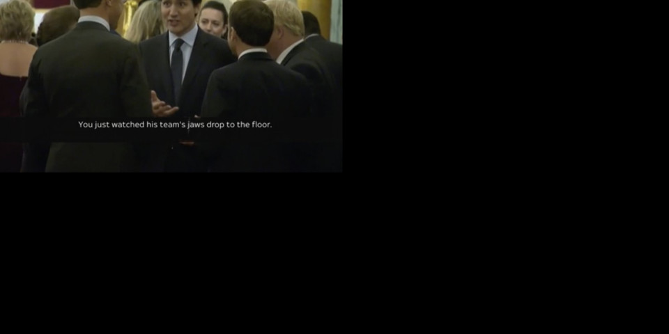 U video klipu se vidi kako Boris Džonson u neverici pita Emanuela Makrona zašto je kasnio na samit, a umesto francuskog predsednika, koji stoji okrenut leđima kameri, odgovara kanadski premijer Džastin Trudo: