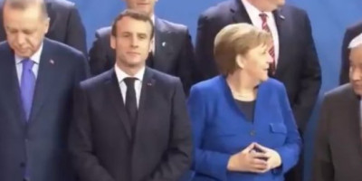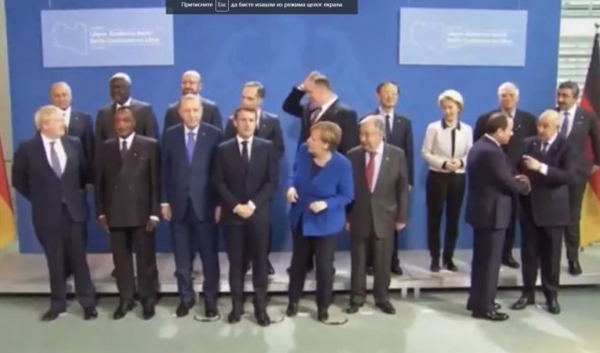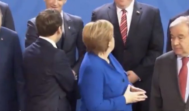 Nemačka kancelarka Angela Merkel i predsednik Francuske Emanuel Makron zbunjeno su reagovali kad su shvatili da predsednik Rusije Vladimir Putin nije pored njih na cereminijalnom slikanju na konferenciji o Libiji u Berlinu