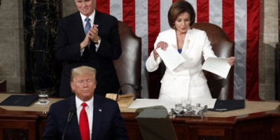 Obraćanje američkog predsednika Donalda Trampa u Predstavničkom domu Kongresa SAD, tokom kojeg je poručio da je stanje nacije bolje nego ikada ranije, zasenio je incident sa predsedavajućom tog doma Nensi Pelosi
