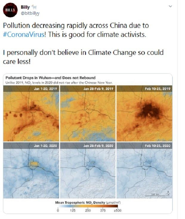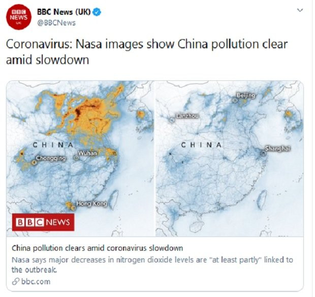 Naučnici NASA-e kažu da je smanjenje nivoa nitrogen dioksida koji izazivaju motorna vozila i industrijska postrojenja, najpre uočeno u Vuhanu, žarištu virusa, ali da se potom proširilo na ostatak zemlje.