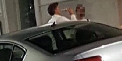Na fotografiji koju je snimio jedan prolaznik, vidi se kako gradonačelnik žudno pije pivo iz flaše, stojeći pored svog službenog automobila.