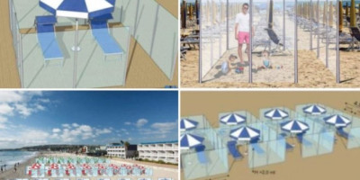 Italijanska kompanija "Nuova Neon Group 2" predstavila je svojevrsno rešenje u vidu kabina od pleksiglasa koje bi mogle da se postave na plažu i tako naprave distancu od drugih kupača.