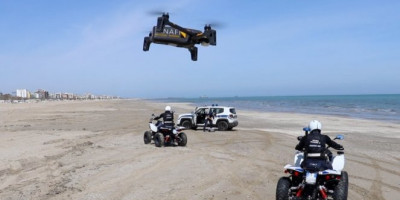 Na videu se vide policajci kako dronom nadgledaju plažu i odjednom opkole čoveka koji je vidljivo iznenađen dolaskom policije na 'kvadovima'.