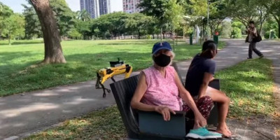 Četvoronožni robot patrolira parkom Bišan-Ang Mo Kio u Singapuru kako bi podsetio ljude na mere bezbednog distanciranja