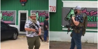 (FOTO/VIDEO) DIVLJI ZAPAD, ALI BUKVALNO! Teksašani naoružani do zuba otvorili radnju uprkos zabrani: Samo neka neko proba da nam zabrani!