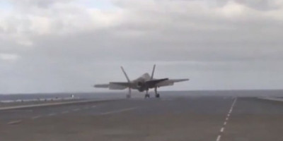 U prvom videu, nevidljivi lovac F-35 iznenada se spusta ispod pramca broda nakon što je cik-cakom krenuo stazom katapulta neobično sporim tempom. Već u sledećem trenutku može se videti pojavljivanje lovačkog aviona koji je uspeo da se uspne i izbegne udar u vodu.
