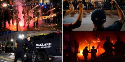 U Ouklandu, u Kaliforniji, mirni demonstranti su privedeni i uhapšeni zbog toga što su bili na ulicama posle početka policijskog časa, preneo je CNN.