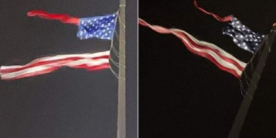 Korisnici Tvitera objavljivali su ovu fotografiju uz komentar da pocepana zastava metaforički prikazuje teško vreme koje Amerikanci prolaze usred pandemije koronavirusa i građanskih nemira širom zemlje posle ubistva Afroamerikanca Džordža Flojda u Minesoti.