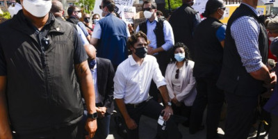 (FOTO) TRUDO KLEKNUO NA PROTESTU PROTIV RASIZMA U OTAVI! Ljudi iz gomile mu dovikivali: USTANI PROTIV TRAMPA!