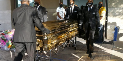 Po vrelom, teksaškom vremenu, ožalošćeni, od kojih su neki nosili majice sa Flojdovom slikom ili recima "Ne mogu da dišem" - čekali su satima da mu odaju poštu prolazeći pored otvorenog kovčega.