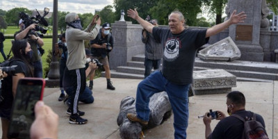 Statua je stajala ispred Kapitola. Na snimcima koje je objavio kanal prikazana je grupa demonstranata koja je nabacila konopac na spomenik i oborila ga na zemlju.