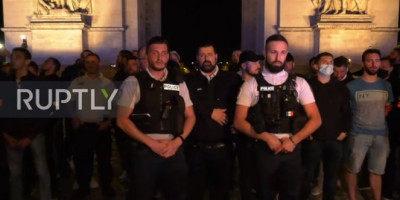 Prvi noćni protest policajaca održan je u subotu uveče ispred Trijumfalne kapije u centru Pariza.