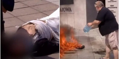 - 48-godišnjaka kao živu buktinju primetili su policajci u patroli. Uz pomoć prolaznika ugasili su odeću na muškarcu, pružili mu prvu pomoć i predali ga lekarima hitne pomoći. Na policajce je vikao da u ovoj zemlji nema pravde - kazao je dnevniku Gazeta viborča portparol lokalne policije Robert Šumjata.