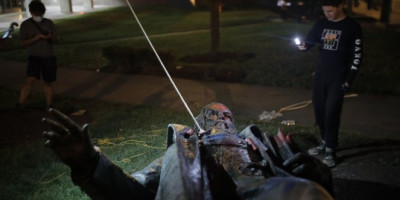 Prenoseći izveštaje lokalnih medija, AP navodi da je jedna od statua dovučena do zgrade lokalnog suda, a da je druga, sa konopcem oko vrata, "obešena" na jednoj banderi.