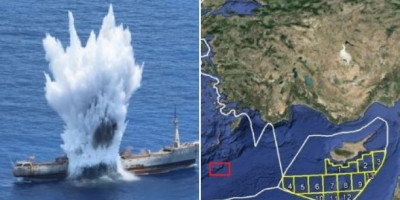 Meta podmornice bio je brod za prevoz municije "A 415 Evros" koji više nije u upotrebi. Na snimku se vidi da je torpedo pogodio metu i da je brod ubrzo nakon eksplozije potonuo.