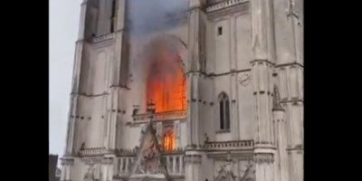 Na fotografijama se vidi kako se dim i vatra kuljaju iz građevine izgrađene između 15. i 16. veka. Prošle godine ogroman požar opustošio je katedralu Notr Dam u Parizu.