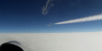 Na snimcima iz pilotske kabine vidi se kako lovac leti pored strateškog izviđačkog aviona RC-135 američkog ratnog vazduhoplovstva i izviđačkog aviona švedskog vazduhoplovstva „Golfstrim“.
