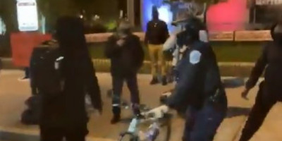 Na video snimcima se vidi kako policija pokušava da se rasporedi i govori okupljenim demonstrantima da se povuku, dok demonstranti odguruju policijske bicikle i viču na njih.