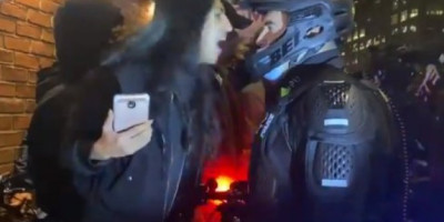 Snimak jedne od nemilih scena u kojoj devojka iz redova demonstranata pljuje policajca ubrzano se širi društvenim mrežama.