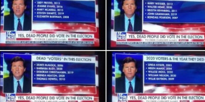 Karlson je pokazao listu sa najmanje 25 imena preminulih ljudi za koje tvrdi da su „glasali“ na izborima.