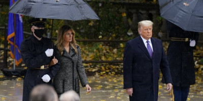 Bračni par Tramp pojavio se na obeležavanju Dana veterana prvi put od američkih izbora, a Melanija je snimljena kako hoda ruku pod ruku sa vojnikom i stoji dalje od supruga Donalda na ceremoniji u Arlingtonu.