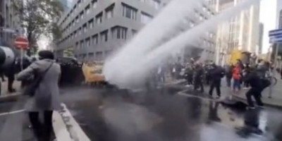 Policija je upotrebila vodeni top kako bi rasterala demonstrante sa trase kojom su se kretali, a koju je već ranije nekoliko puta blokiralo oko 300 ljudi koji protestuju protiv pokreta "Kverdenker".