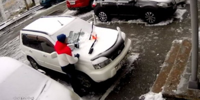 Vozač džipa u Vladivostoku za dlaku je izbegao sigurnu smrt u drami koja se u deliću sekunde dogodila dok je čistio sneg sa auta parkiranog ispred jedne stambene zgrade