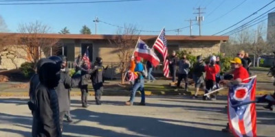"Jedna grupa se identifikovala kao Patriotska molitva, a druga je odbila da se identifikuje, ali je nosila prepoznatljive antifašističke simbole", izjavio je predstavnik državne policije Daren Rajt, preneo je lokalni dnevnik Olimpijan.