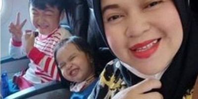 Ratih Vindania objavila selfi s dvoje nasmejane dece u trenutku kada su se ukrcali u avion i napisala "Ćao, ćao porodico! Sada idemo kući!"