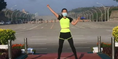 U snimku koji je postao viralan, vidi se kako ona nesvesna svega što se dešava bezbrižno nastavlja da vežba dok vojska zauzima zgradu i hapsi političare te zemlje, uključujući i predsednicu vladajuće Nacionalne lige za demokratiju Aung San Su Ći.